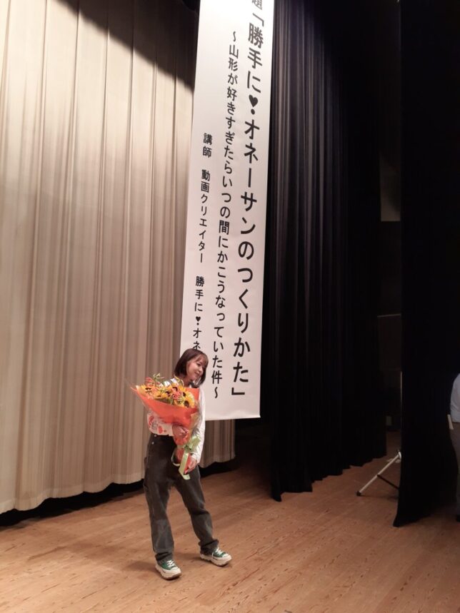 講師は山形のローカルテレビでは有名な「勝手にオネーサン」(駐車場係として所定位置への誘導も無事任務完了(`・ω・´)ゞ)。