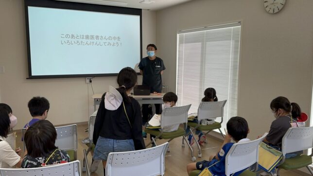 白岩小の2年生が職場体験に来てくれました。たくさんの質問とともに一生懸命メモをとって学習してくれました。また、模型を使ったむし歯治療に緊張しながら、真剣に取り組んでいました٩( ”ω” )و